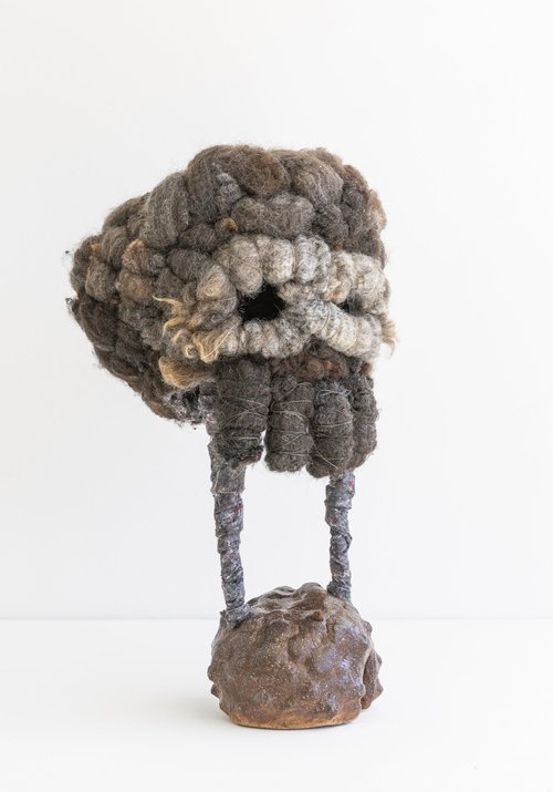 These pieces sit in the tension between ancestral memory, geological time and contemporary drivers. Through material investigation—soft wool, felt and fired clay—I explore how our evolutionary inheritance shapes consciousness in an increasingly unstable world.